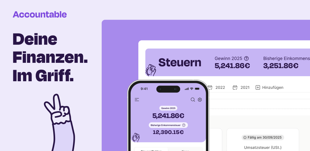 Aber unser neues Design bedeutet weit mehr als nur neue Farben oder ein anderes Logo. Es geht darum, Accountable für dich noch verständlicher, klarer und fokussierter zu machen – damit du dich schnell zurechtfindest, deine Steuern mit einem guten Gefühl erledigen kannst und deine Finanzen jederzeit im Griff hast.