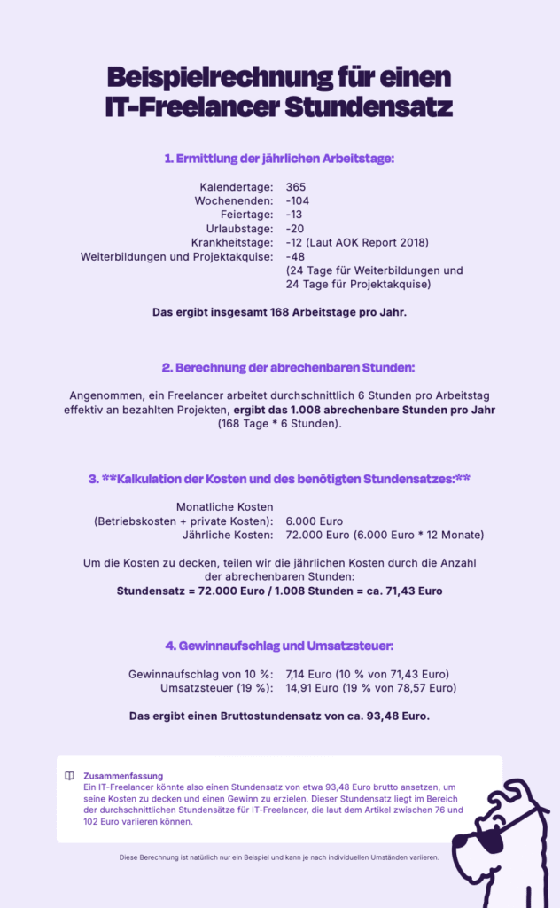 Beispielrechnung für einen IT-Freelancer Stundensatz