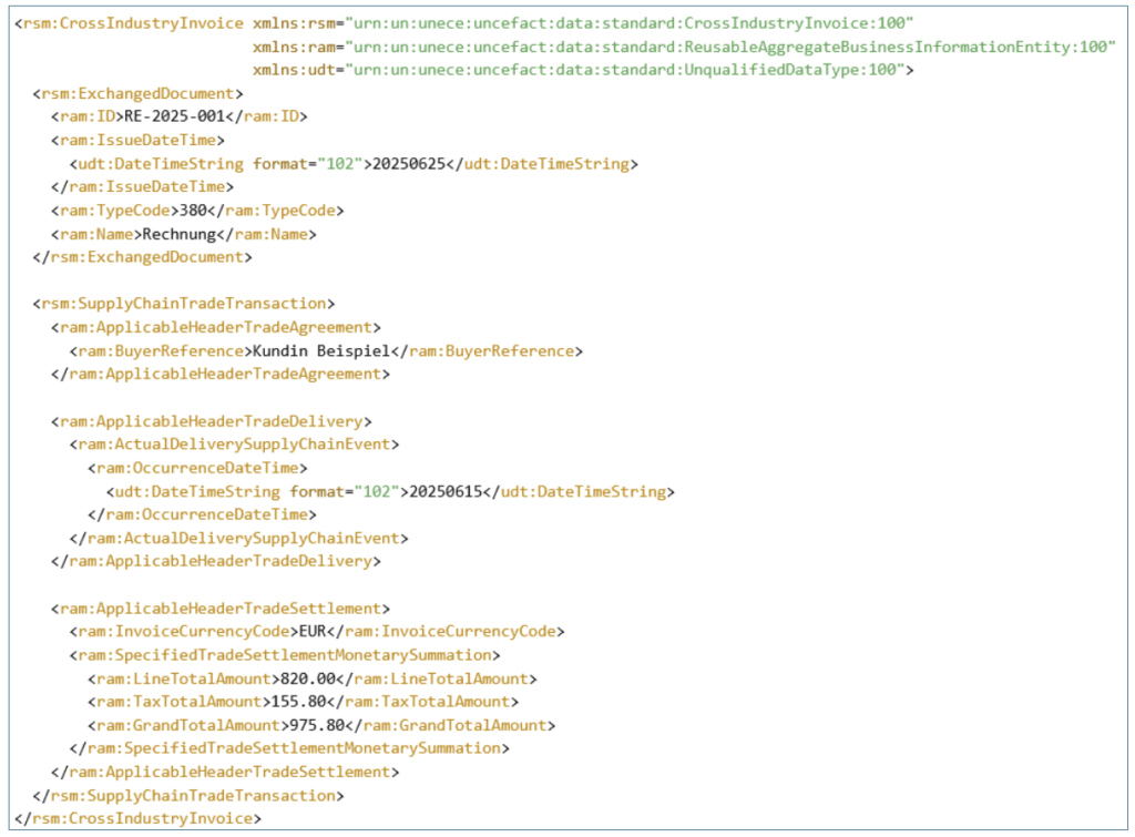 XML-Ausschnitt (XRechnung / ZUGFeRD-kompatibel)