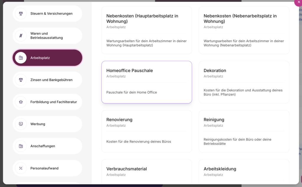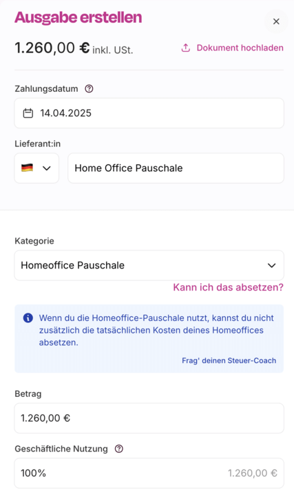 Tipp von Accountable 💡: Erstelle hier direkt eine neue Ausgabe für die Homeoffice Pauschale in Accountable!