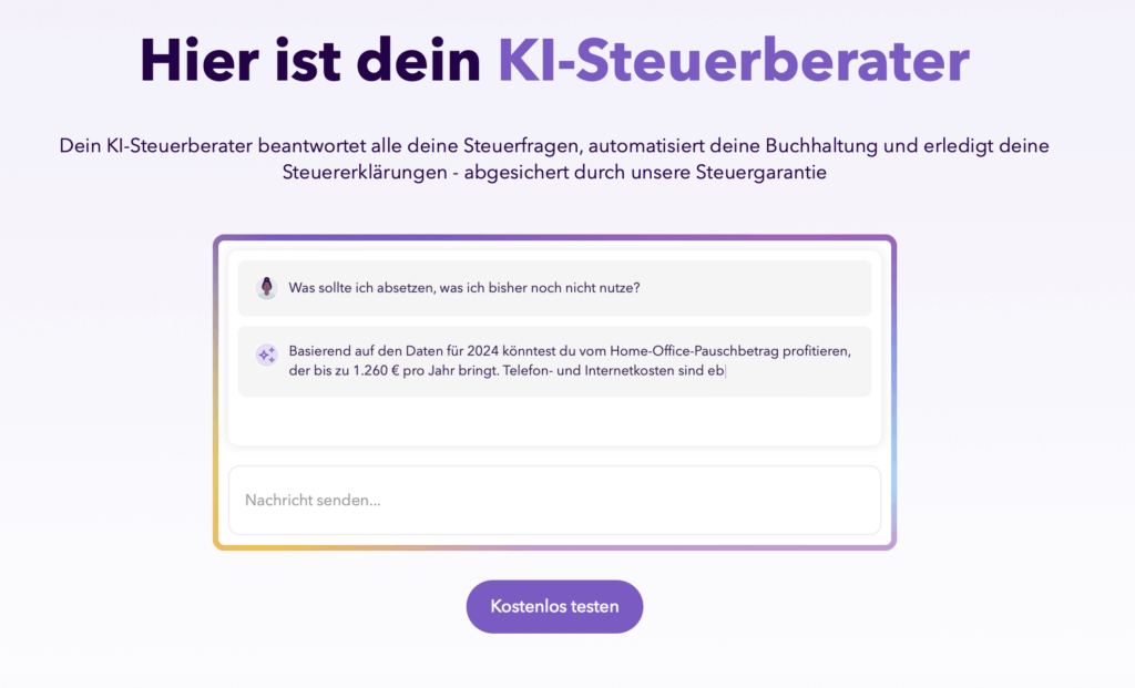 • Steuer-Tipps in Echtzeit: Die KI informiert dich, welche Ausgaben du absetzen kannst oder welche Fristen anstehen.