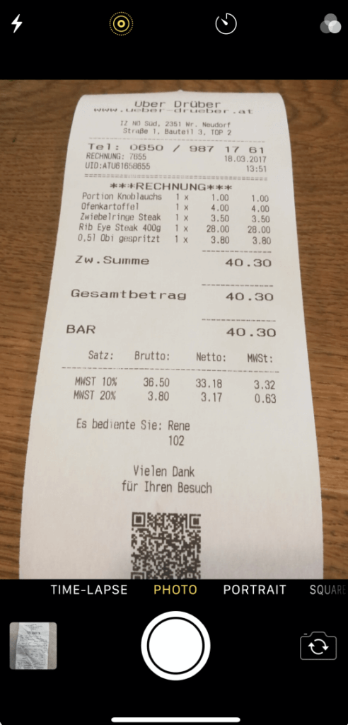 Gut zu wissen: Du musst nicht alle deine Belege in einem dicken Ordner aufbewahren. Digitalisier deine Buchhaltung doch einfach! Mit der Fotoerkennung von Accountable kannst du ganz einfach ein Foto von deinen Rechnungen machen und in der App speichern.