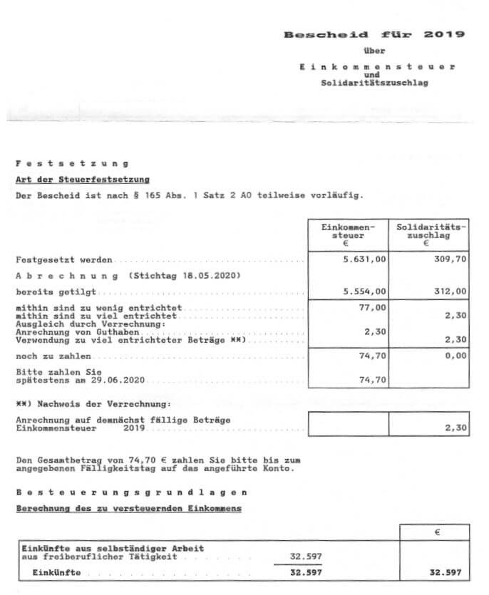 As a freelancer in Germany, you are obligated to file an annual tax declaration. After submitting your details, you will have to wait for the final tax assessment of the tax office. How long you have to wait is again depending on how busy the tax office is. In larger cities like Berlin, Munich, or Cologne, it can take a bit longer, whereas smaller cities might be quicker in their assessment. So be prepared to wait for anything between 3 weeks and 2 months.