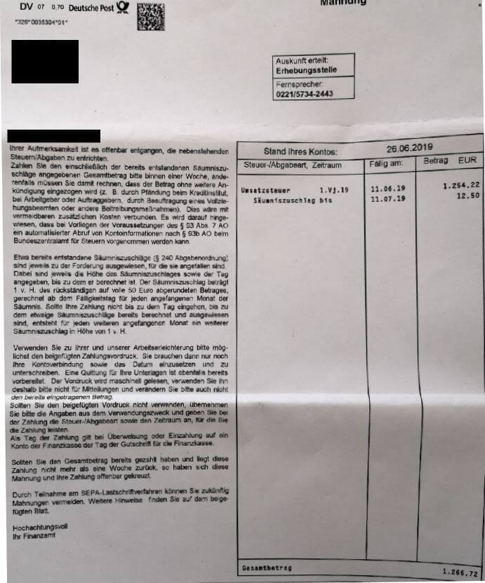 It is totally normal to forget a deadline or miss a payment once in a while. Usually, the tax office will remind you if they are missing certain documents or are waiting for open payments. But if you ignore these letters for too long, chances are you will receive a collection letter.