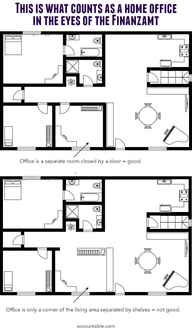 For most of those, you will need to divide these pro rata - according to the area of your home office to the total living area (including home office space). This means that if you live in a 100sqm home and your home office is 10sqm, you can deduct 10% of the expense (e.g: rent)